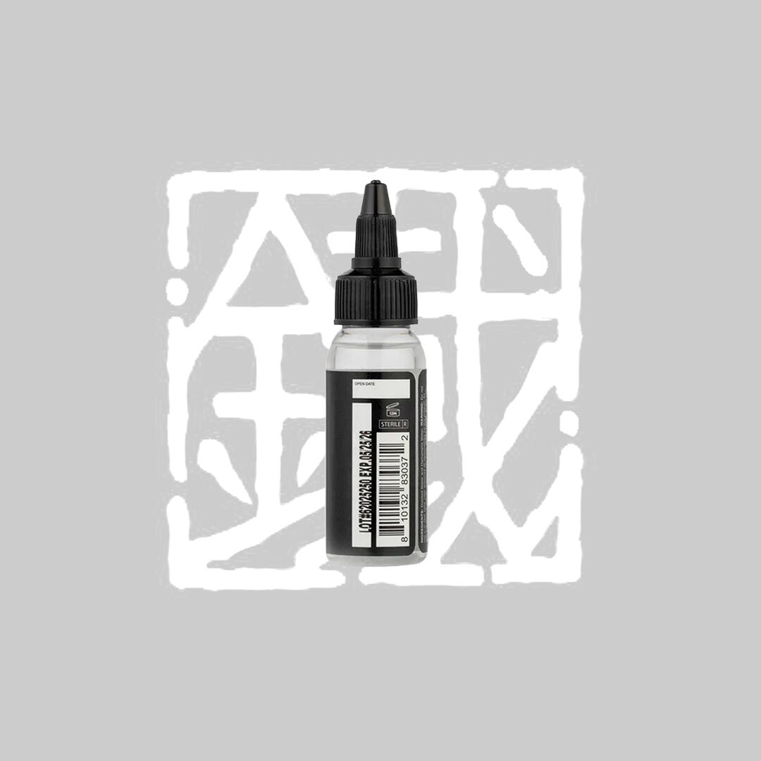 タトゥーインクと混ぜて濃度を調整する際に使用します。特にDynamic社のインク各色との相性が良く、滑らかなグラデーションを作ることができます。